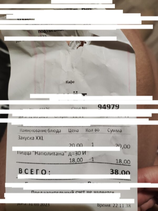 Не приурепили чек к заказу. Оплата была онлайн. Пицца и салат в отдельной упаковки, без общего пакета.