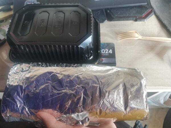 Лаваш, две котлеты, пекинская капуста, картофель фри, огурец, помидор, сыр, лук в панировке, соус