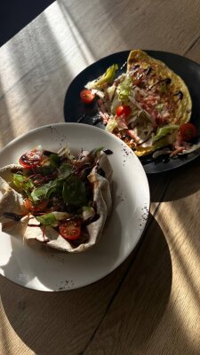 Кухня хорошая ,обслуживание тоже хорошее ,единственное ,что 16 числа там было холодно неуютно,я замёрзла и кофе подали почти холодным