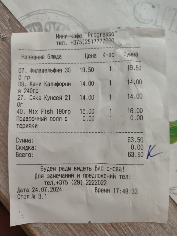 Все было вкусно, только если нету каких то позиций, то лучше убрать.