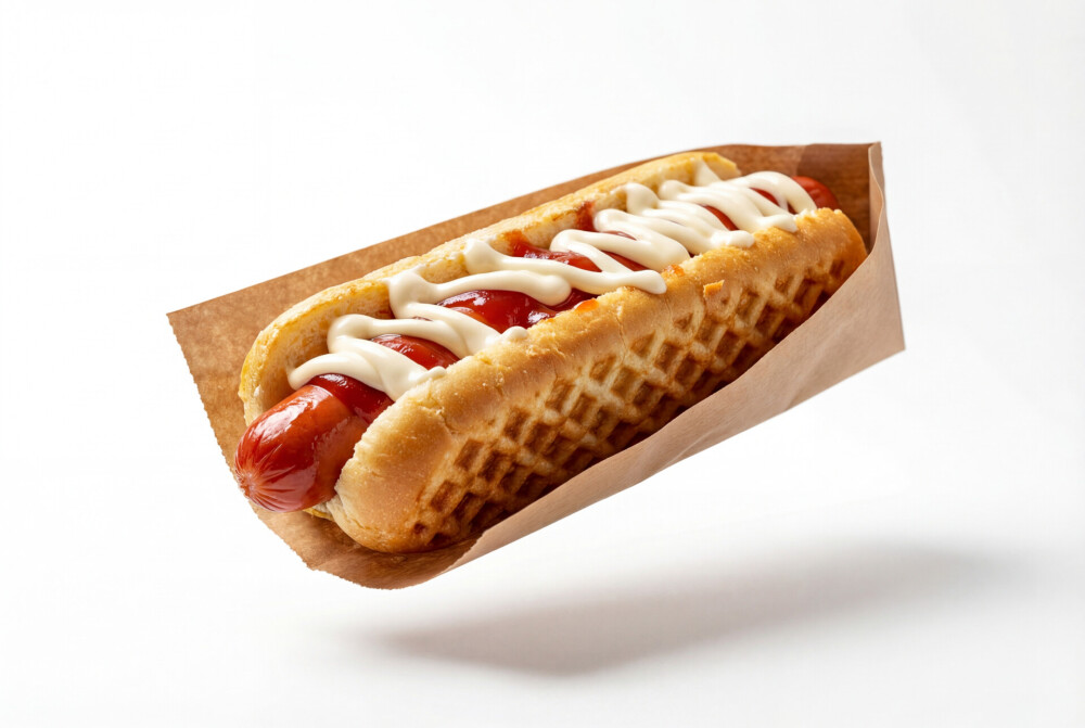 Булка, колбаса, соус