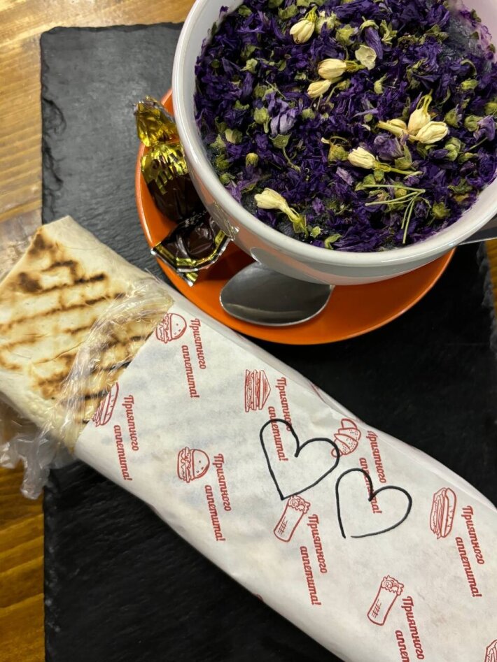 Капуста, лук, помидор, огурец свежий, мясо, томатный соус, сметанно-чесночный соус, сыр, сырный соус