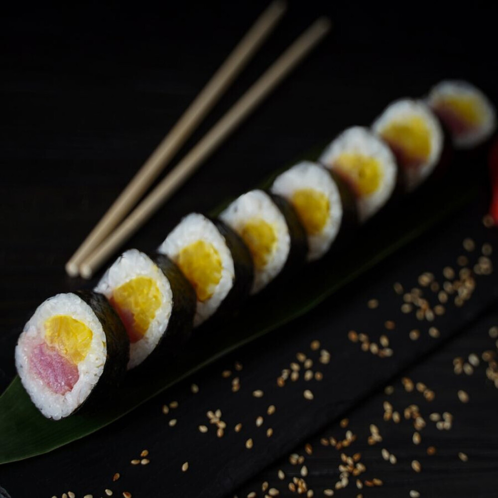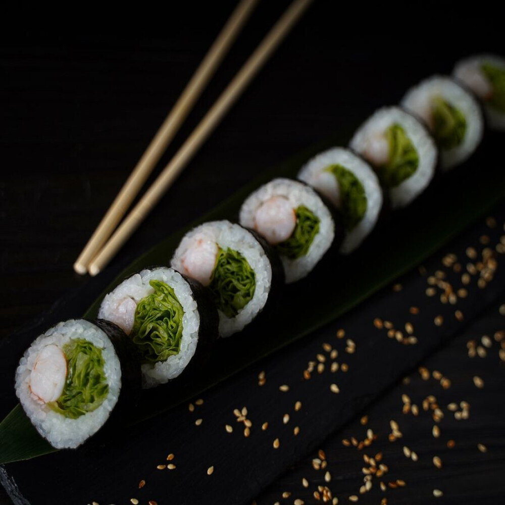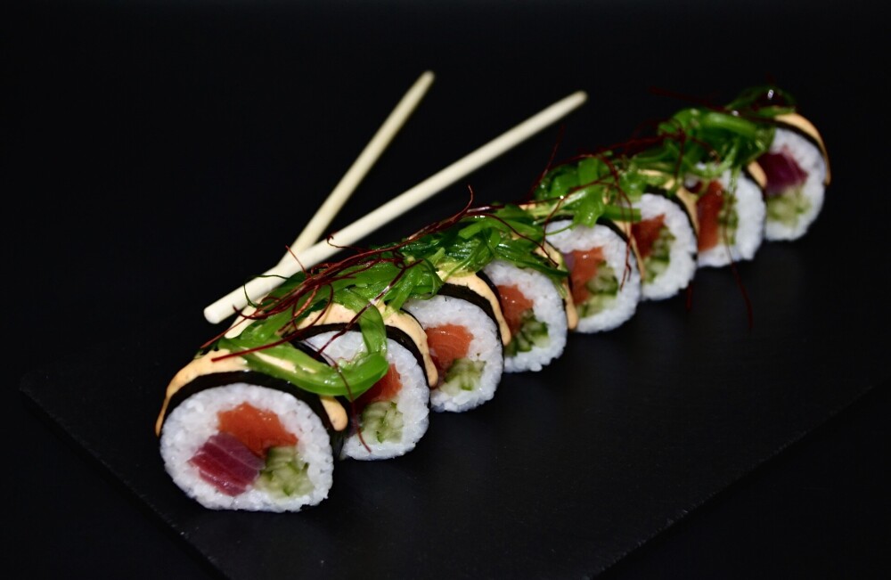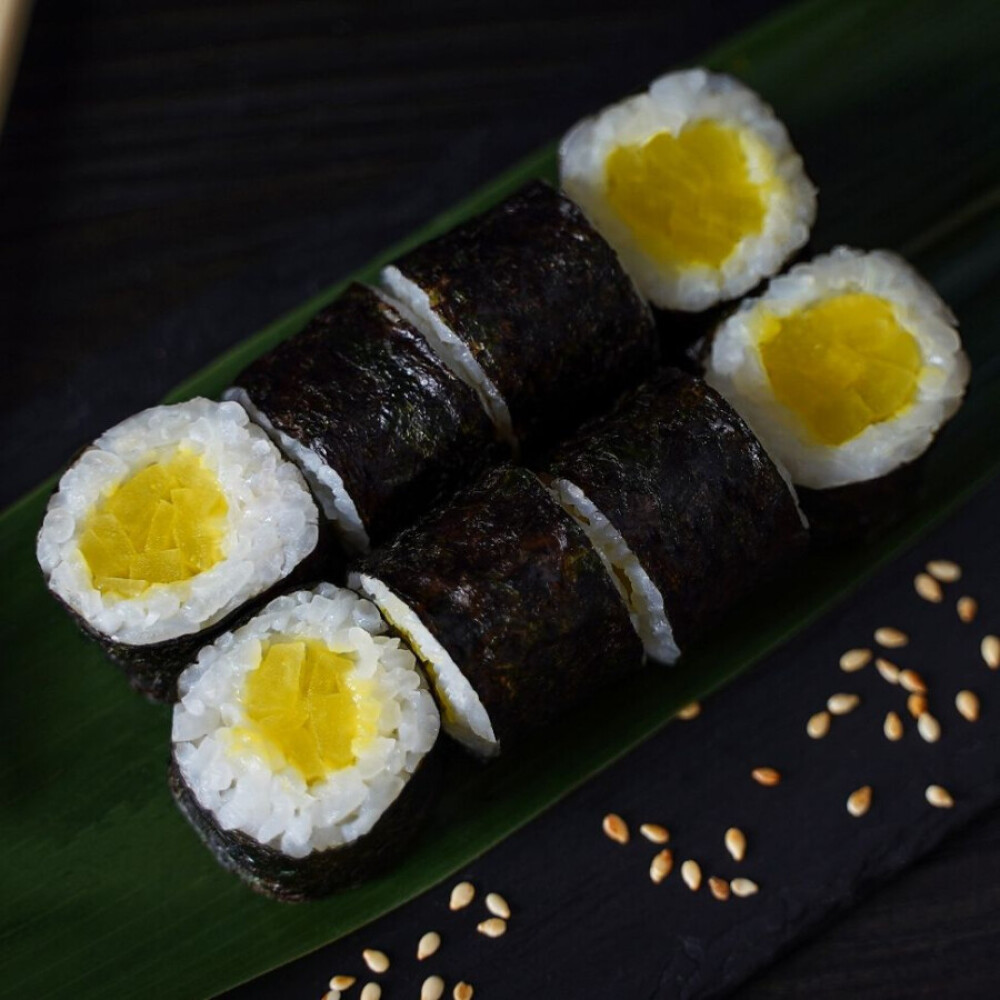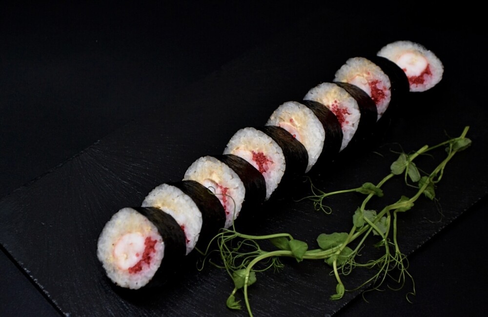 Запеченный ролл с лососем, запеченный ролл с тунцом и такуаном , запеченный «Хосо креветка», запеченный «Хосо огурец», «Филадельфия» с огурцом, «Бонито», ролл в угре и тунце, «Калифорния»