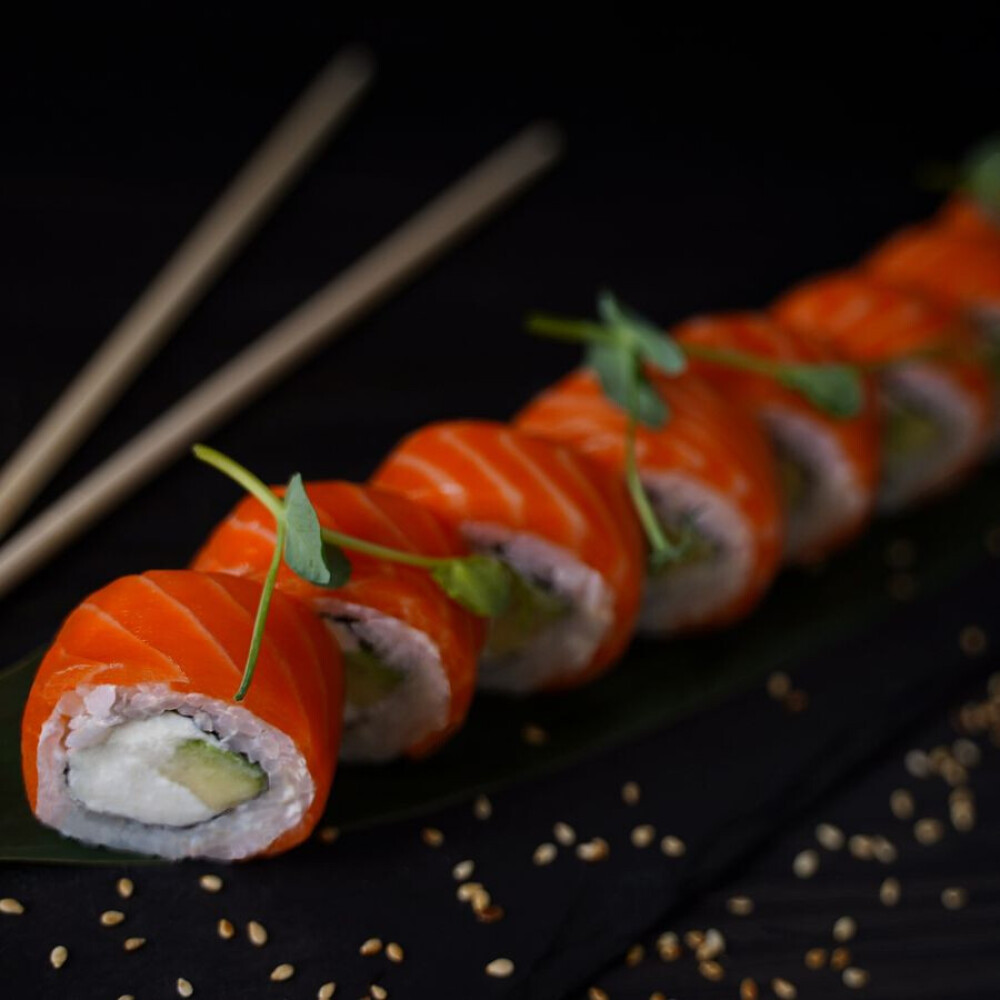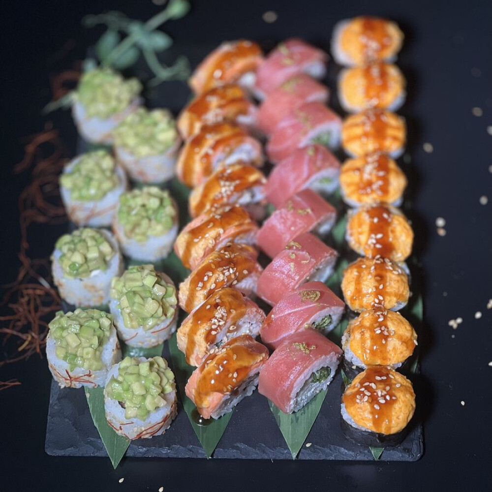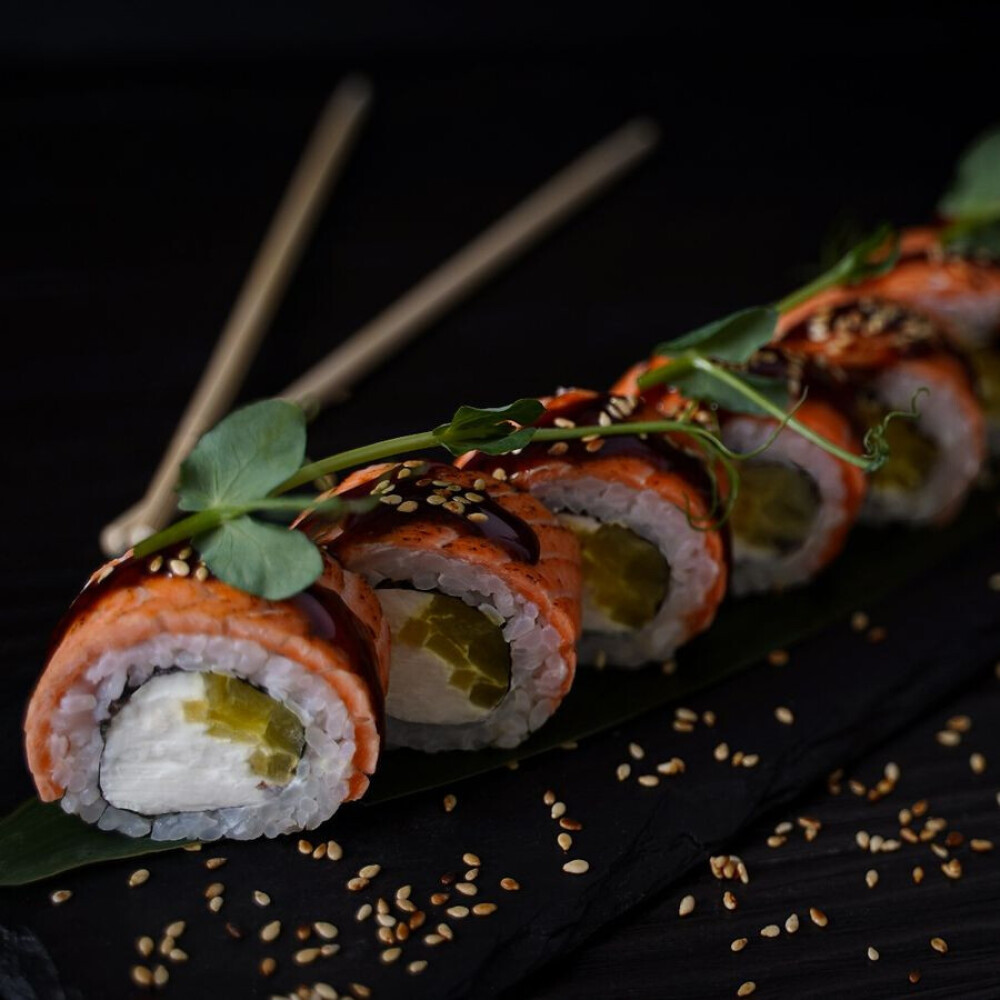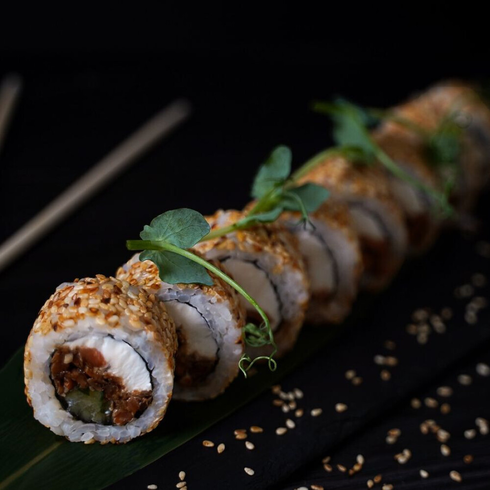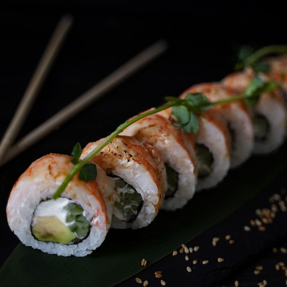 Ролл в угре, ролл «NAM», ролл «Терияки», «Филадельфия» с авокадо
