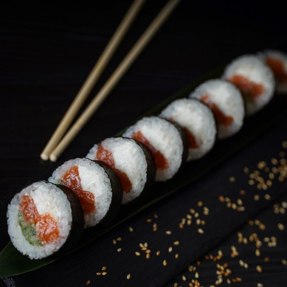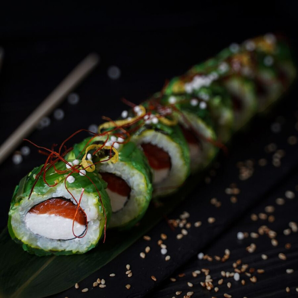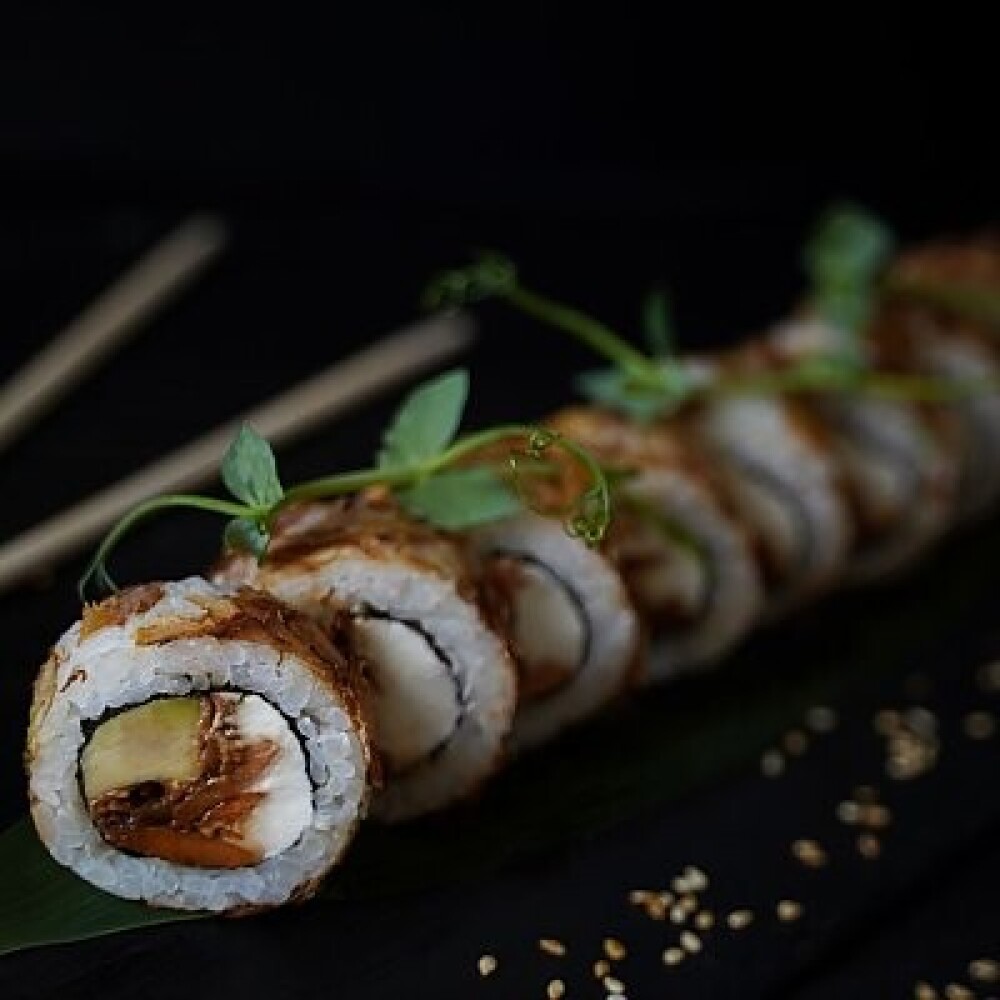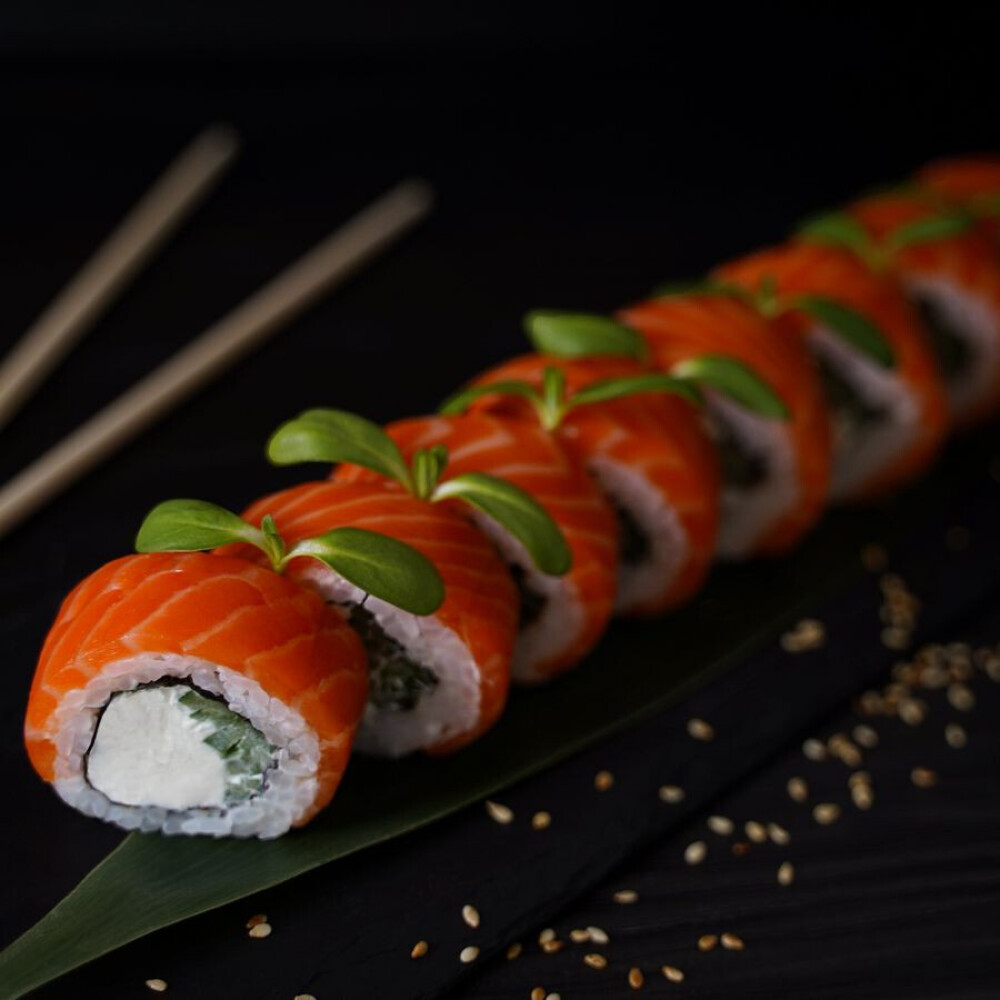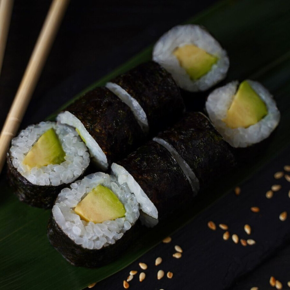 Ролл в угре, ролл «NAM», ролл «Терияки», «Филадельфия» с авокадо