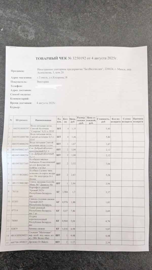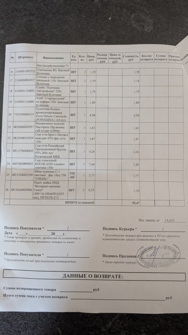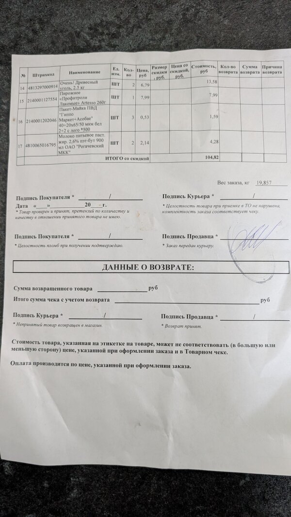 Курьер вошёл в положение и позаботился о заказе, пока я не освободилась! Заказ собирали оперативно, общались вежливо!