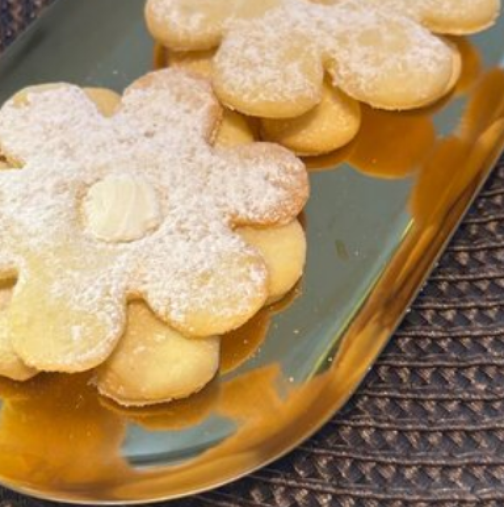 Песочное печенье, крем, сахарная пудра