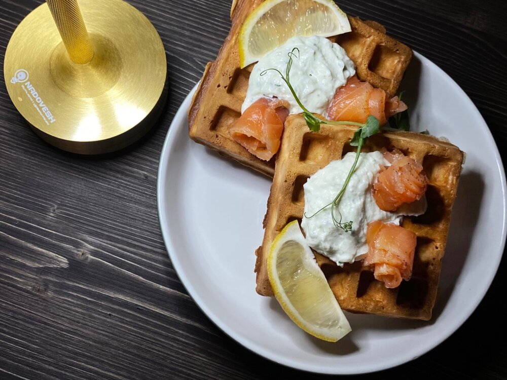 Венские вафли с красной рыбой и кремчизом
