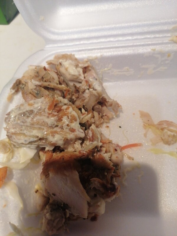 Кроме отвращения я не испытала ничего! Курица зелёного цвета в салате и во втором блюде 50 р выкинула в мусорку
