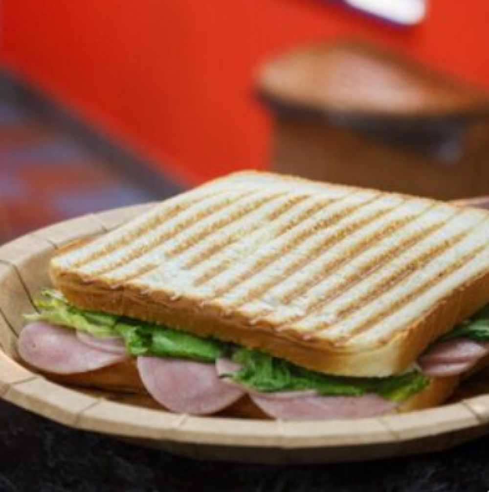 Хлеб тост, ветчина, сыр «Чеддер», свежие листья салата, соус на выбор