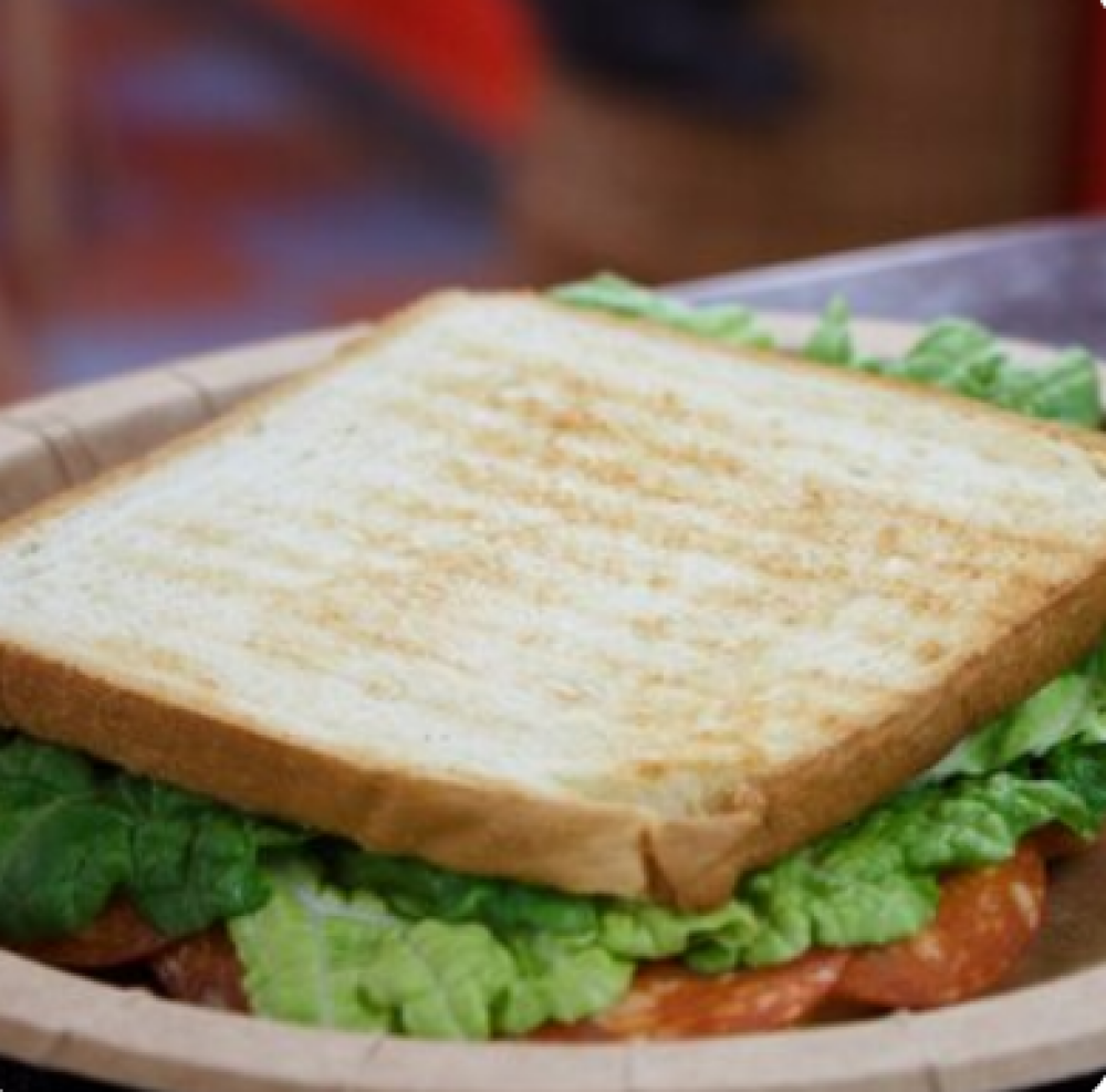 Хлеб тост, пепперони, сыр «Чеддер», лист салата, соус на выбор