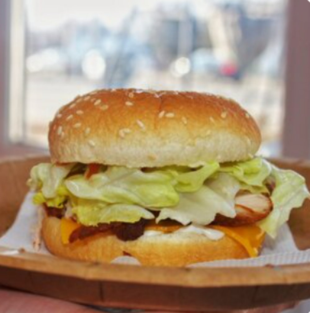 Курица, сыр «Чеддер», салат, соус на выбор, хлеб
