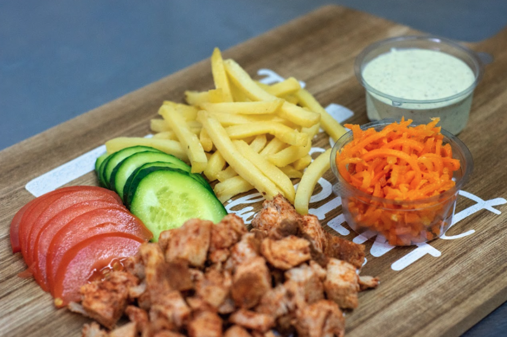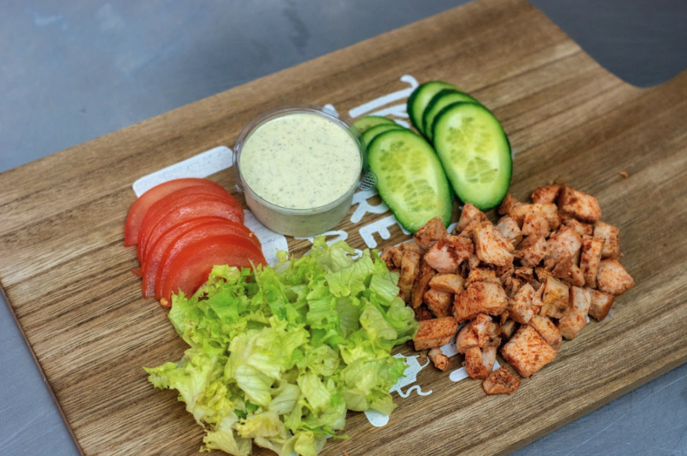 Капуста, огурец, помидор, соус «Фирменный», курица, специи