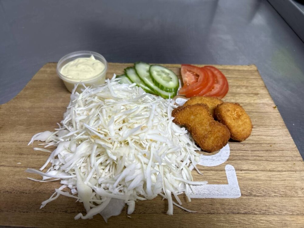 Наггетсы, капуста, огурец, помидор, соус «Фирменный», специи