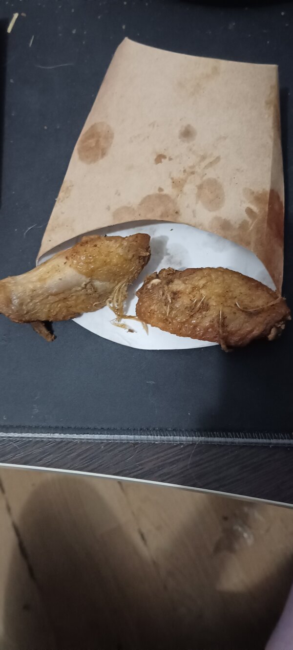 Заказал пиццу и крылышки барбекю,пицца хороша а вот крылышки с перьями к сожелению.