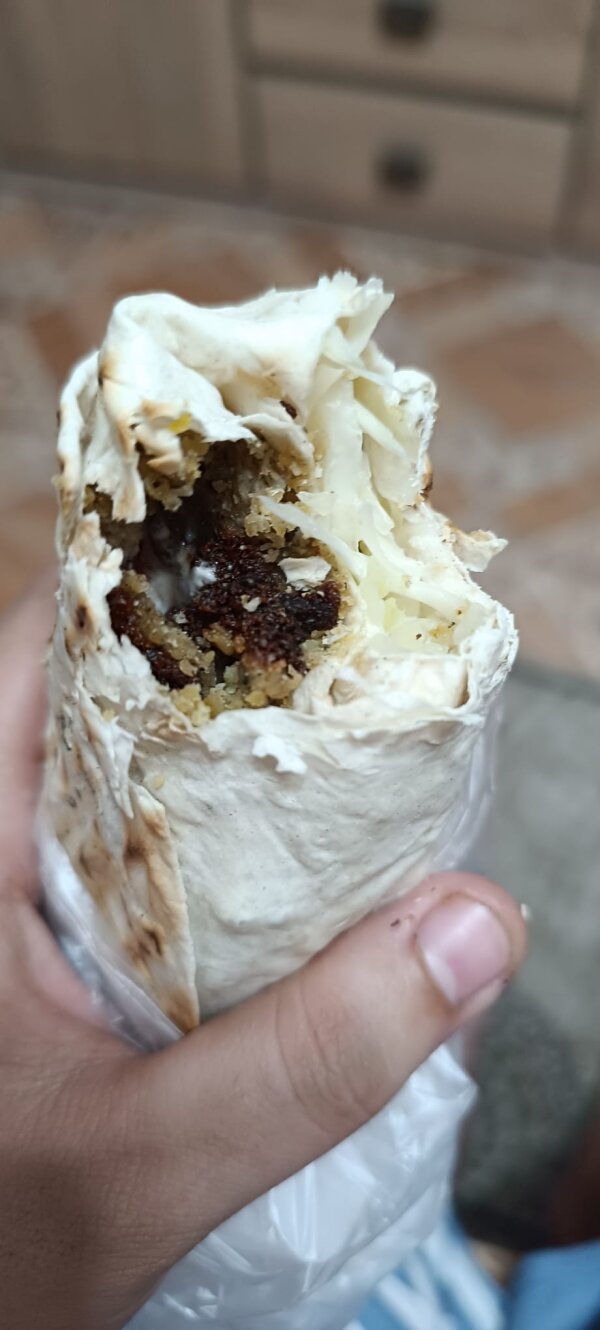 Шаурма отвратительная просто блин и гарелый фалафель .кто делает он вообще непонимает что он ложит в шаурму.