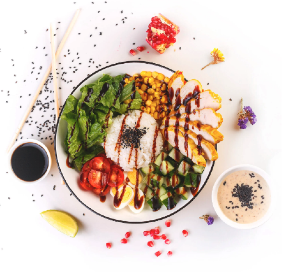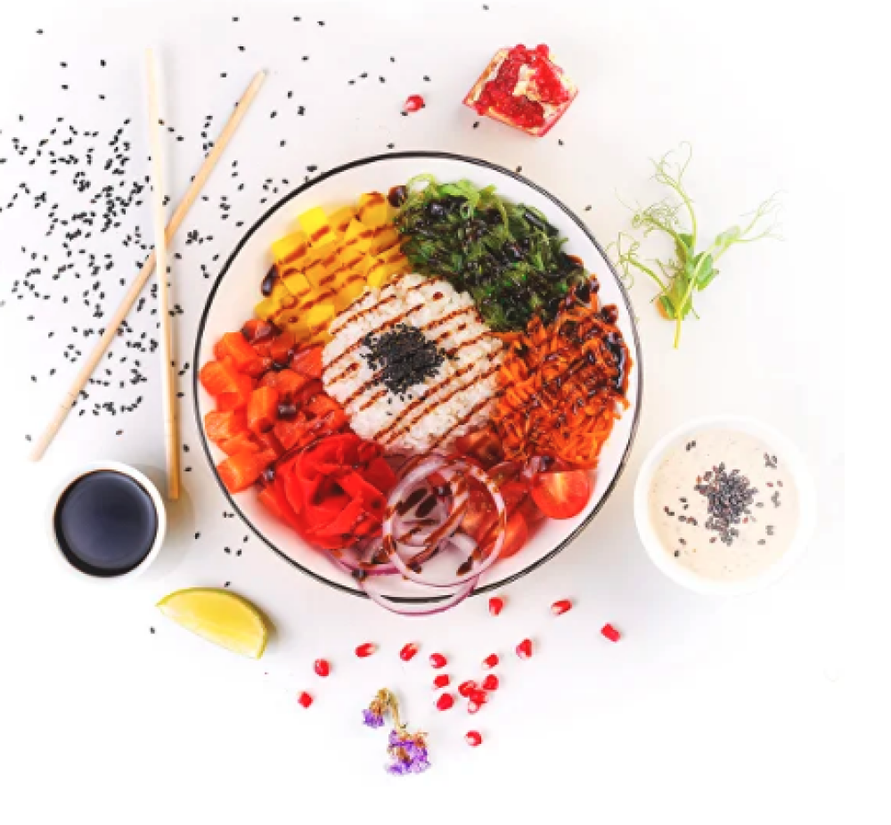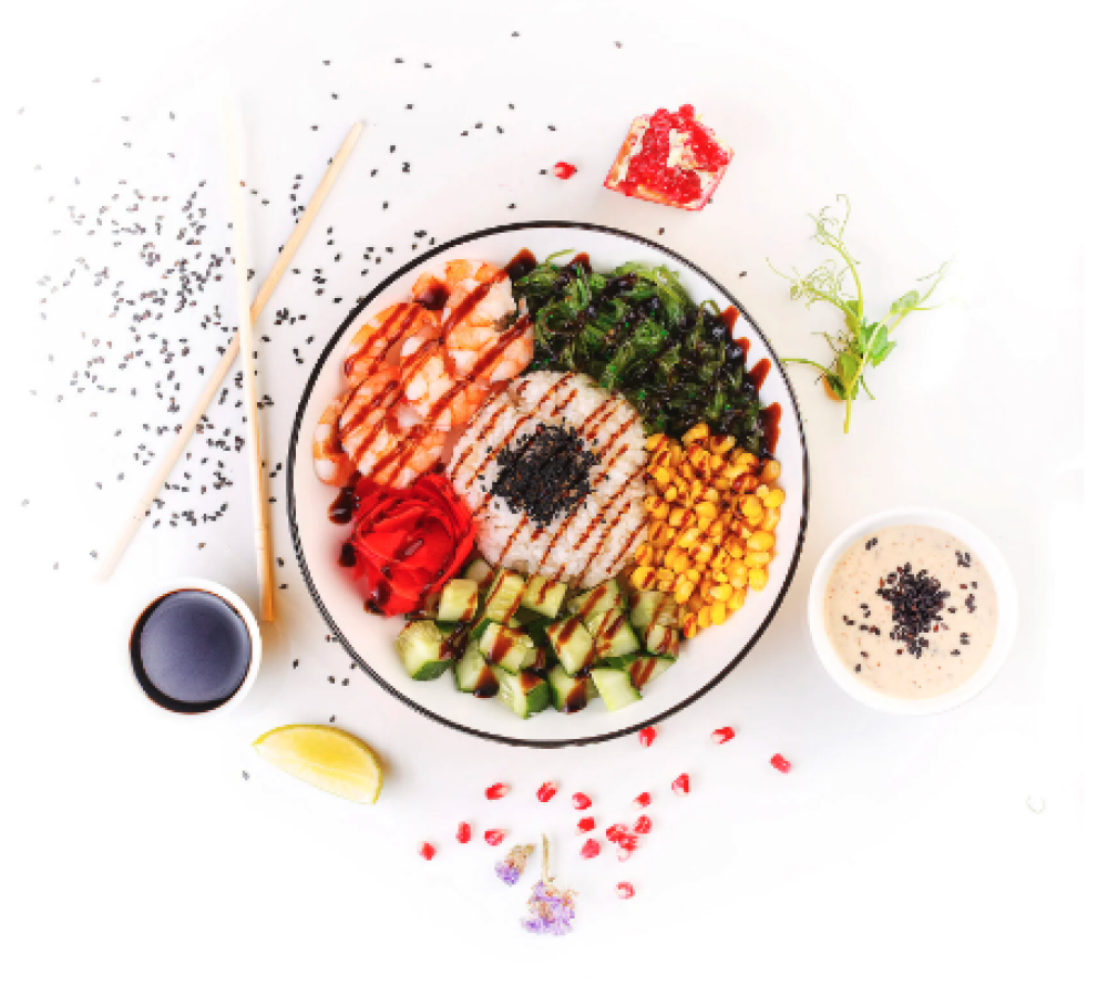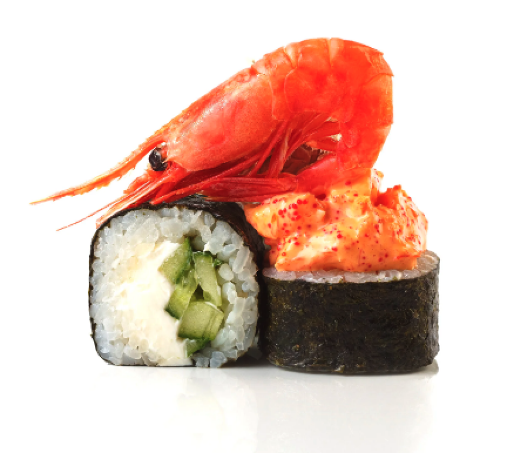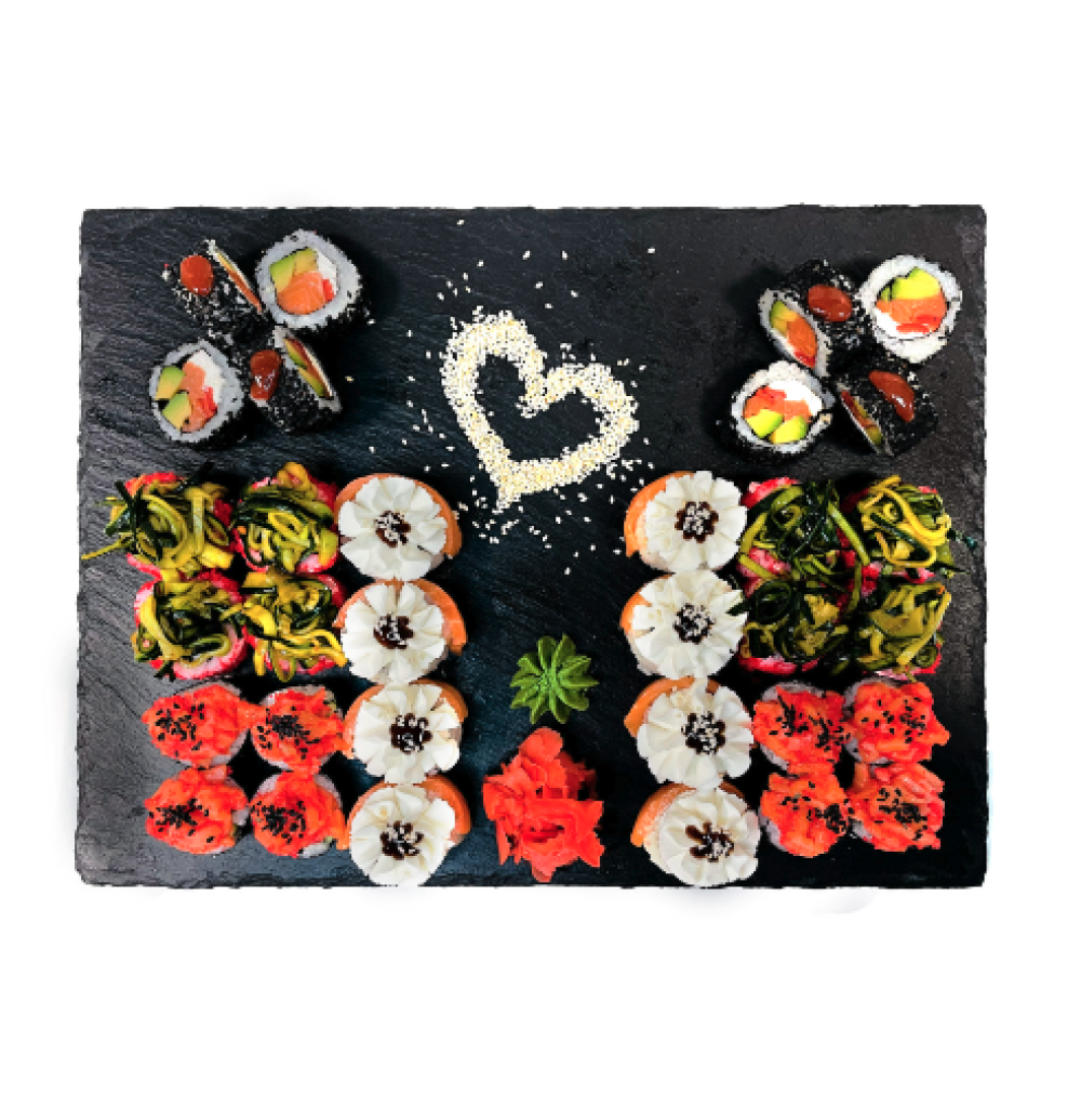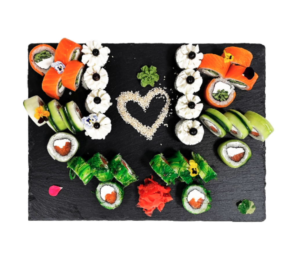 Ролл Темпура с лососем, Ролл с Тунцом и ананасом, Ролл Калифорния, Ролл Цундоку с беконом и соусом барбекю