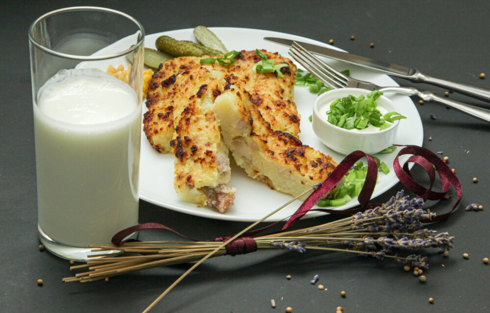 Говядина, Батон, Молоко, Яйцо, Масло подсолнечное, Соль, Приправа для фарша, Соус молочный
