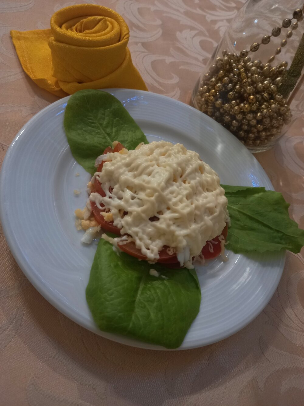 Помидоры свежие, Яйцо, Сыр, Майонез, Укроп, Чеснок