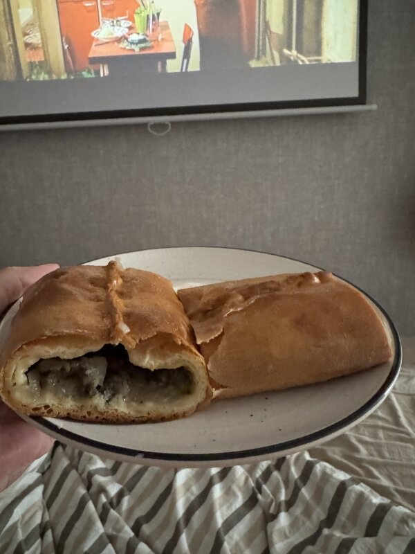 Очень вкусно, спасибо. По мне бы заменить слоёное тесто на обычное)