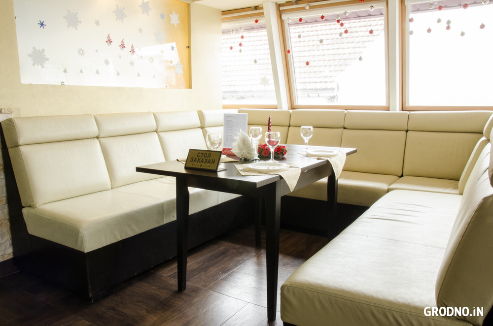 Официантка приносила подмышкой сок,рюмки ставила ножками вверх,трижды пересчитывали счёт.И ещё хватает нюансов. Впечатления не особо хорошие от посещения данного заведения