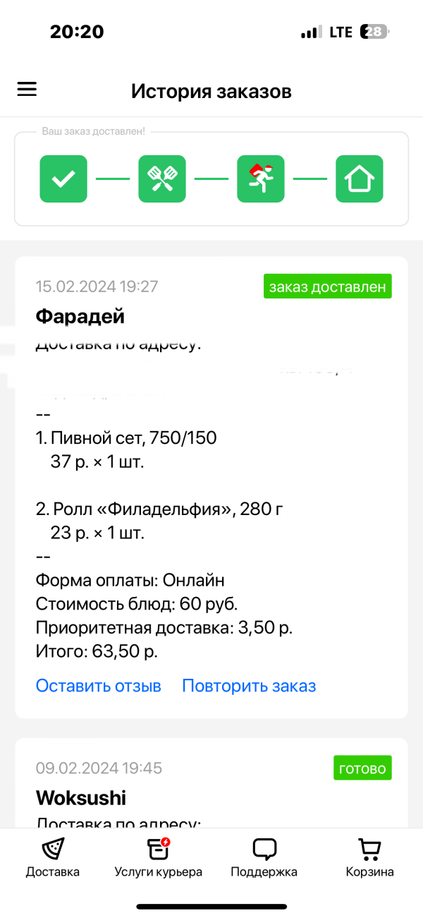 Время доставки: Все доставили 35 минут