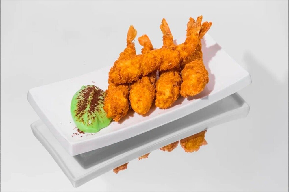 Креветки, икра тобико, авокадо, рис, нори, соус спайс