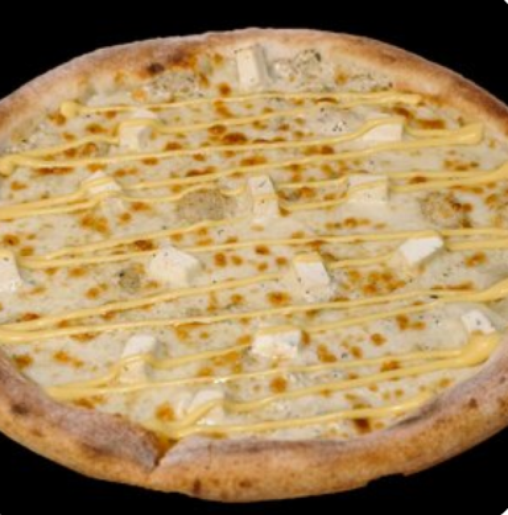 Тесто, сметанно-чесночный соус, сыр «Моцарелла», сыр «Сулугуни», сыр «Фетакса», сырный соус