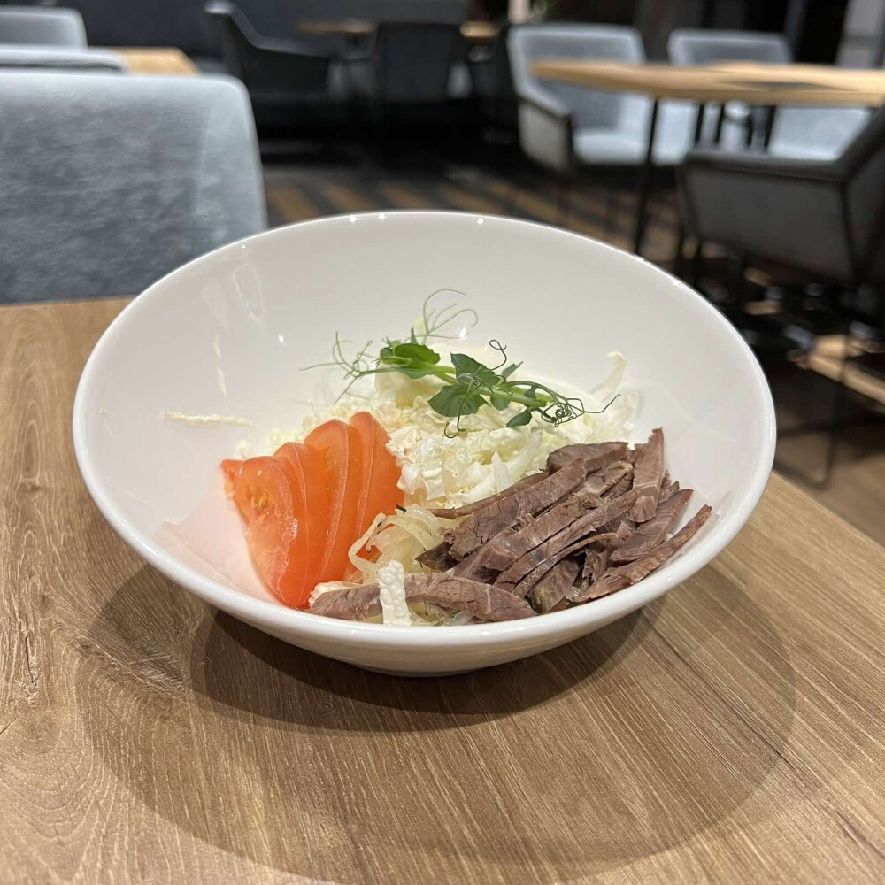 Говядина отварная, капуста пекинская, помидоры свежие, лук, майонез