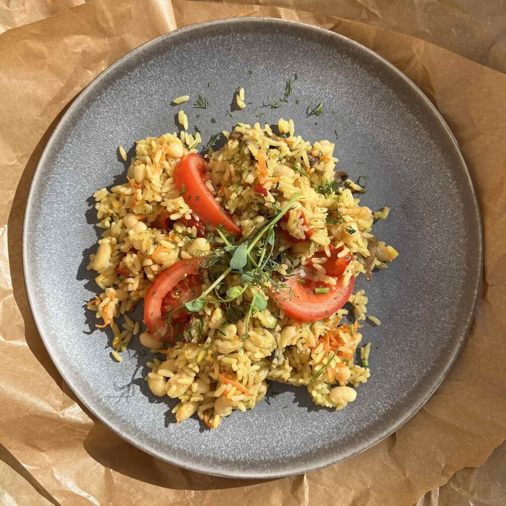 Овощной плов с фасолью и шампиньонами