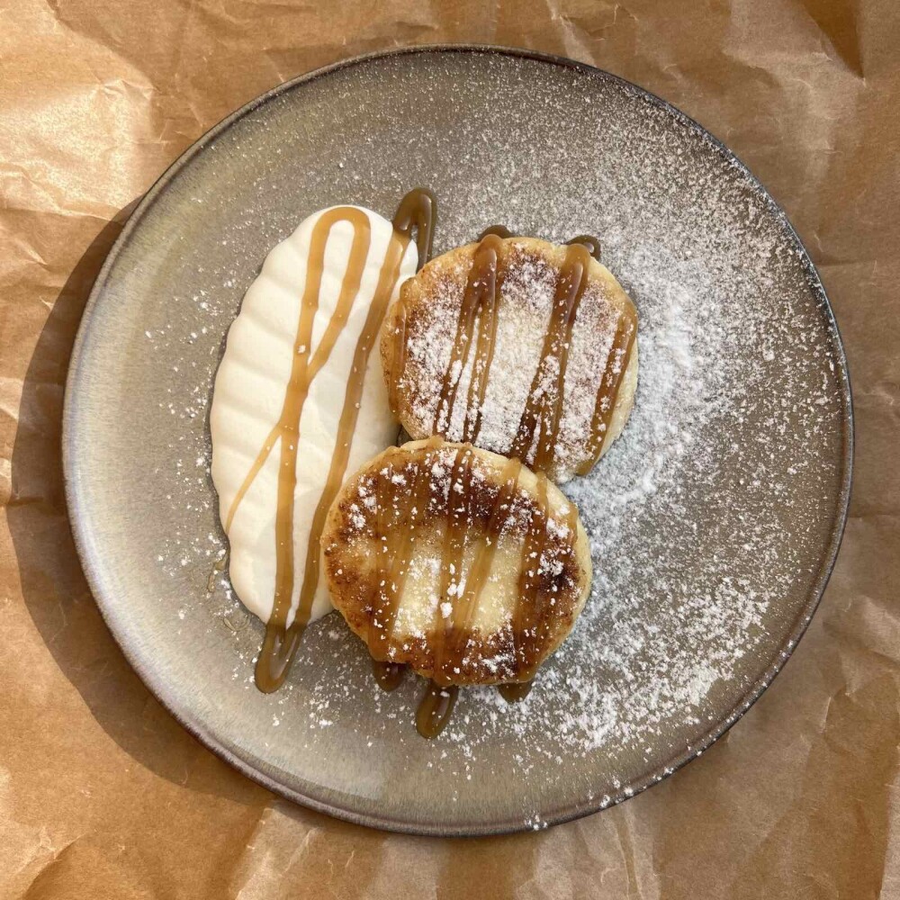 Сырники из творога со сметаной и соленой карамелью