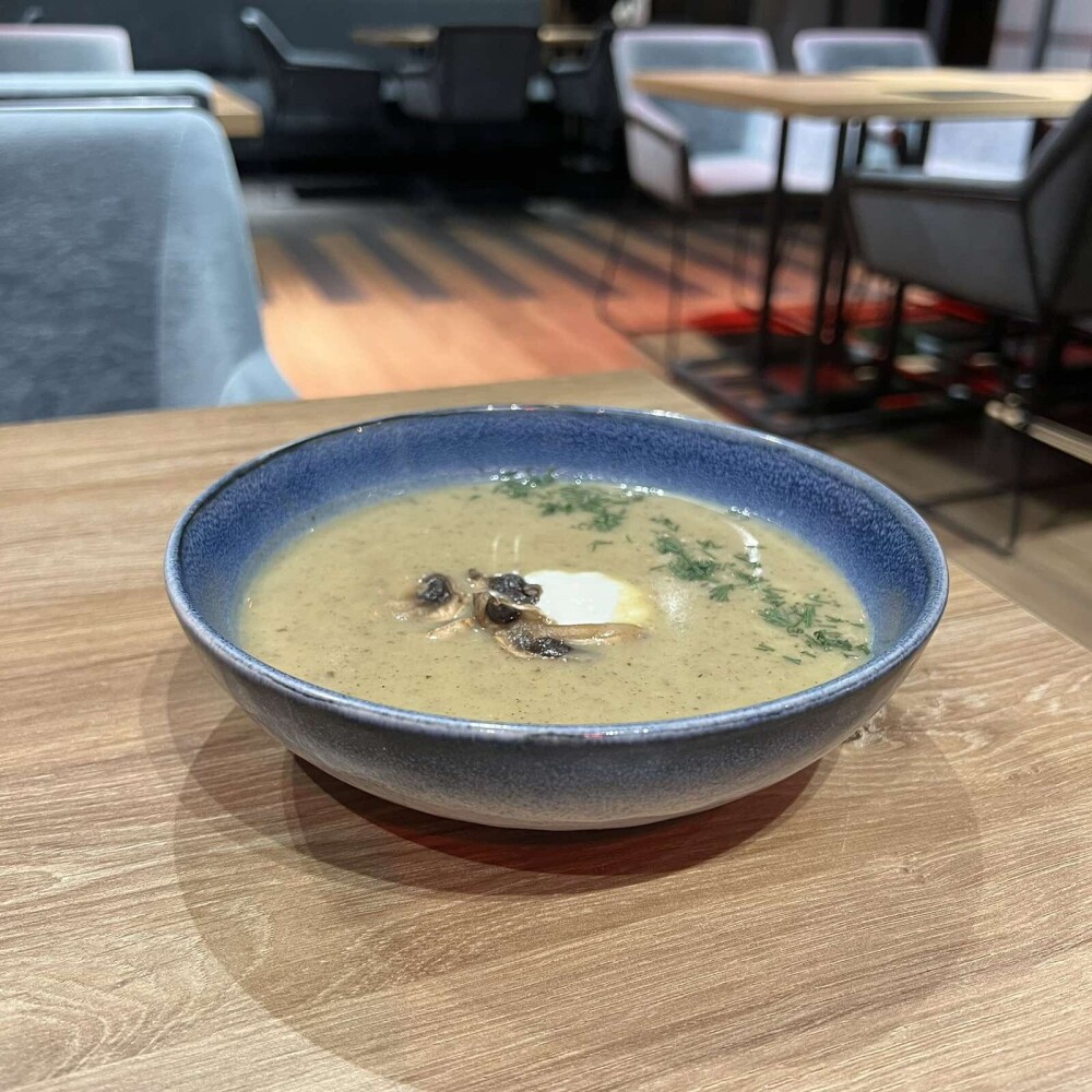 Картофель отварной с жареной грудинкой с салатом из огурцов со сметаной