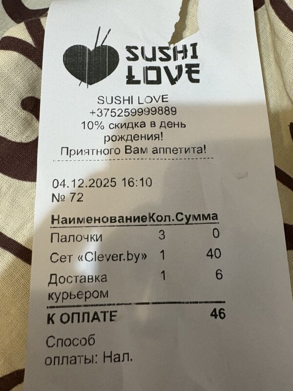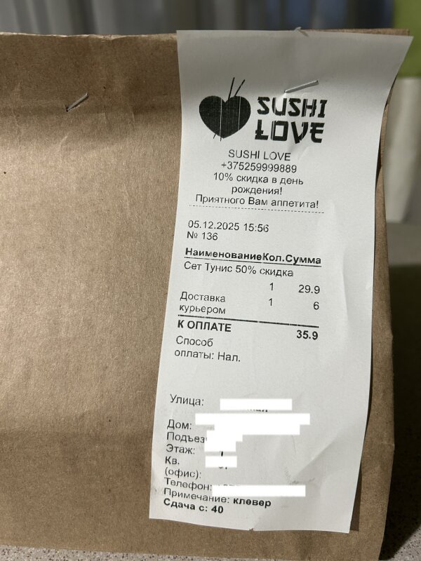 Время доставки: Была загруженность, суббота, время ожидания 2.5часа, но нас предупредили и нас это устраивало.