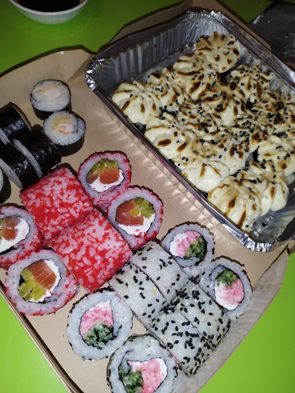 Доставили 2 часа 30 минут, всё было вкусно но горячие суши уже были холодные!