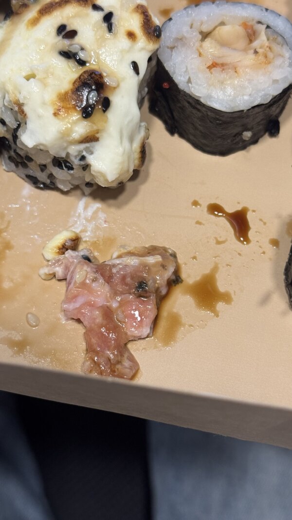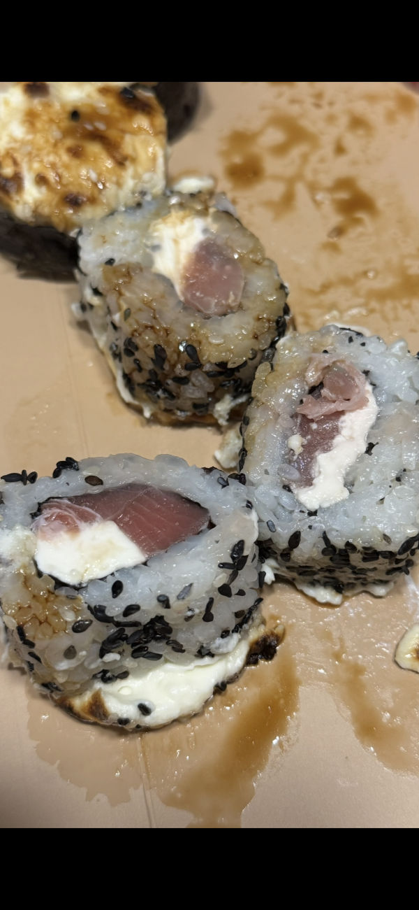 Роллы свежие. Но ролл с тунцом отдавал очень сильной горечью. Из рыбы уже начала выделяться какая-то жидкость, которая эту горечь и давала.