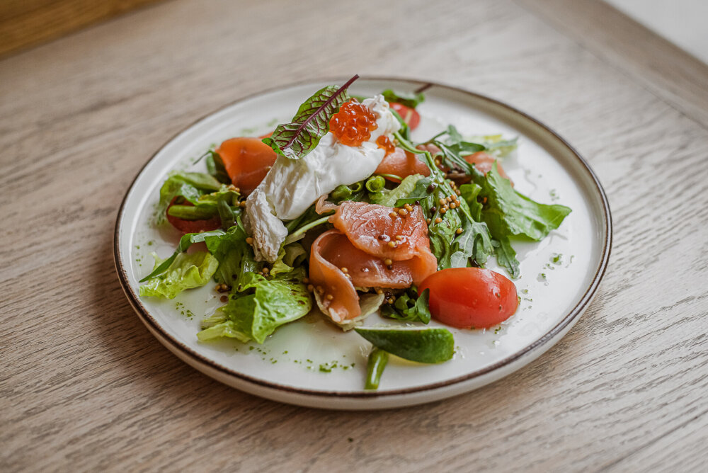 Салат со слабосоленой семгой и яйцом пашот