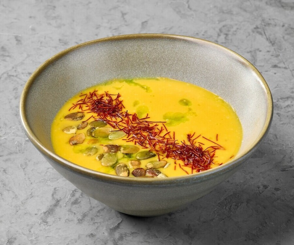 Микс-салат, язык отварной, груша, мёд, масло сливочное, кунжут, кедровый орех, руккола, соус «Бальзамический», соус «Ореховый», соус соевый, сок «лимонный»