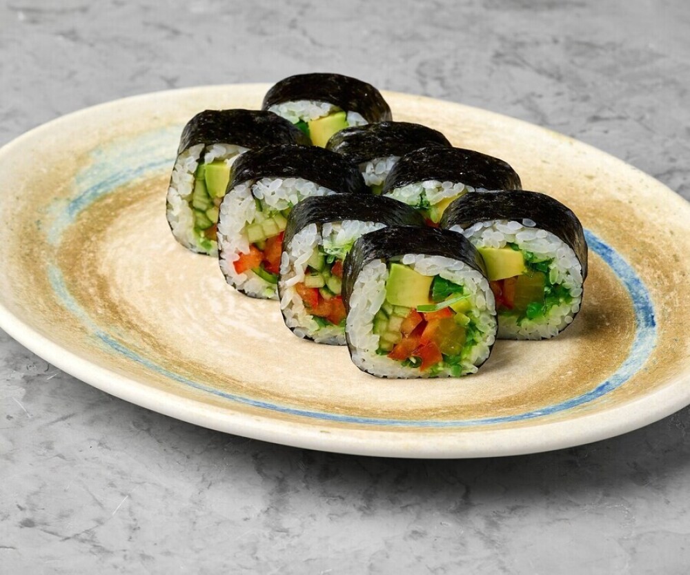Рис, нори, авокадо, перец сладкий, огурец, такуан, чука