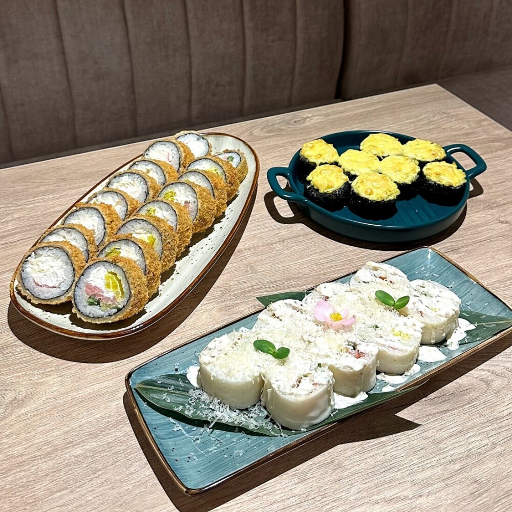 30 шт. Фри креветка, фри лосось, фри тунец. Имбирь, васаби, соевый соус, сливочный соус чили. Сеты не суммируются с другими скидками и акциями.