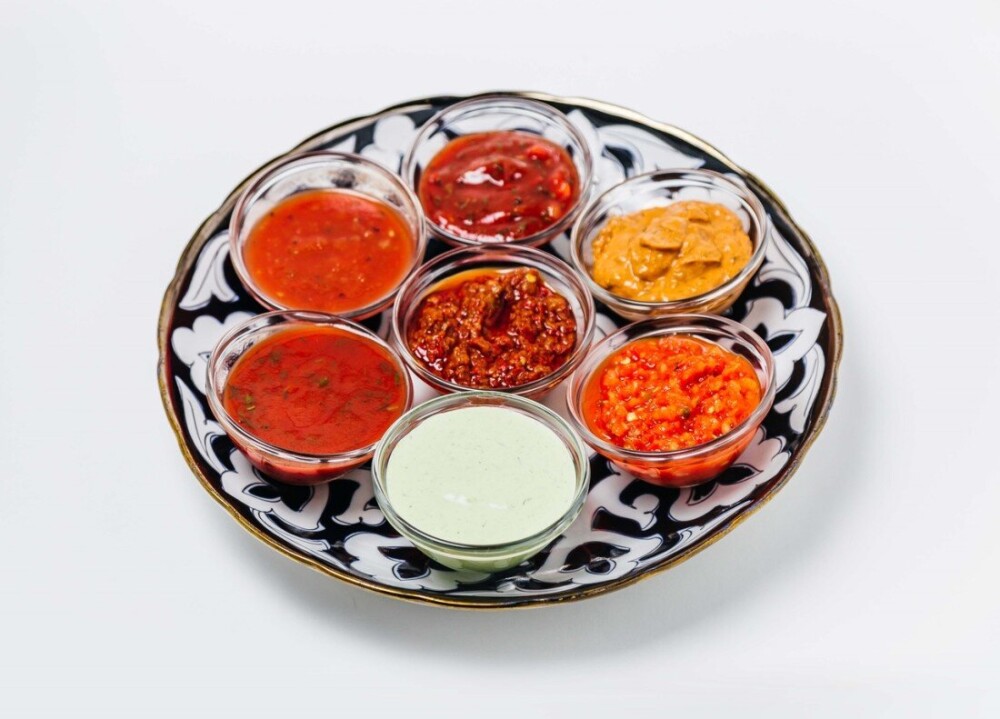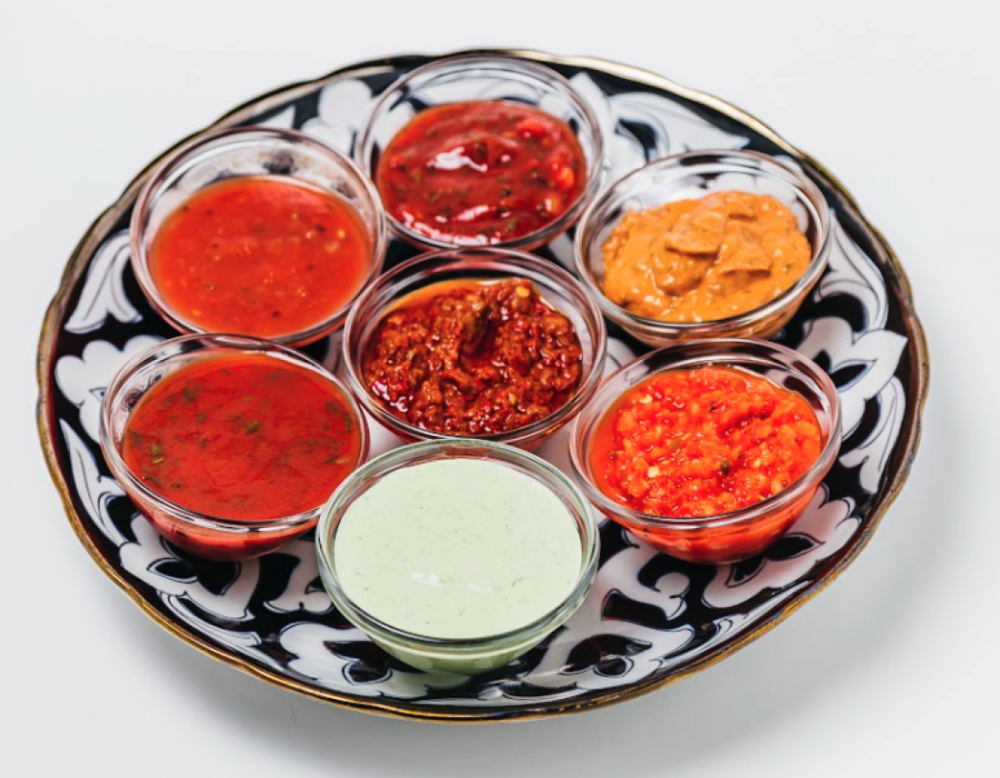Острый соус на основе томатов, острого перца, чеснока и масла.