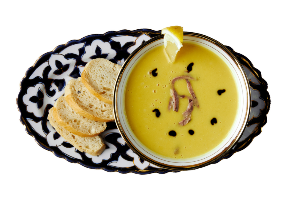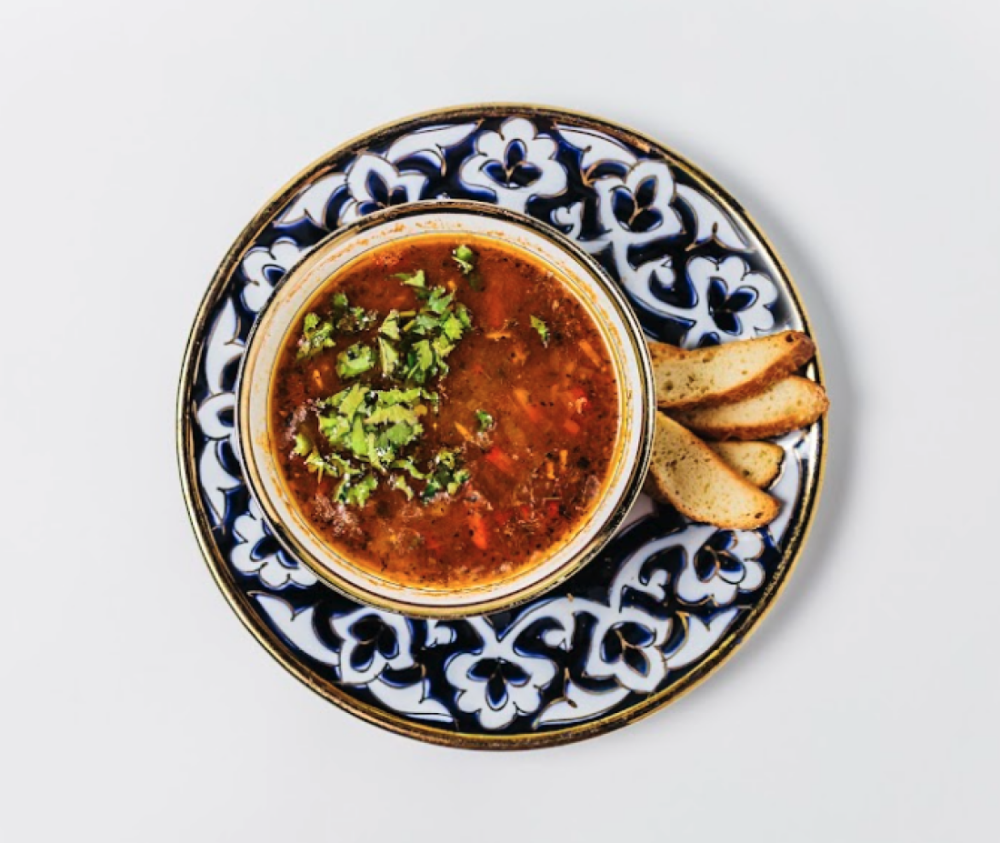 Насыщенный острый суп из телятины, риса, чеснока с добавлением ароматных восточных специй и кинзы. Подается с хрустящими гренками.