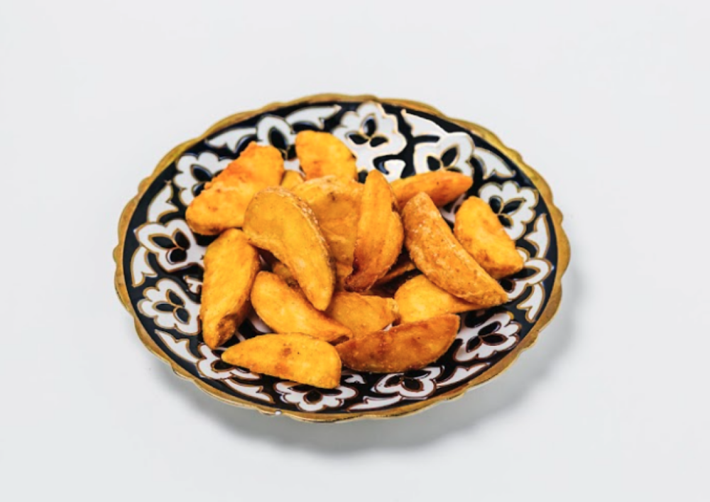 Картофельные дольки с ароматными специями запеченные до хрустящей корочки.