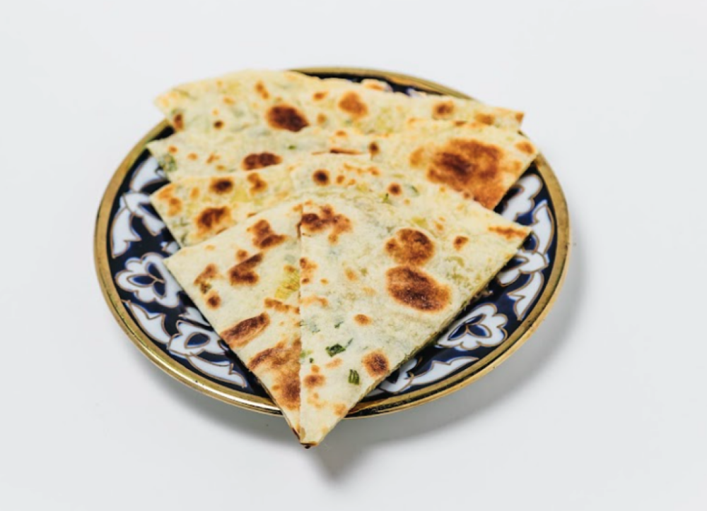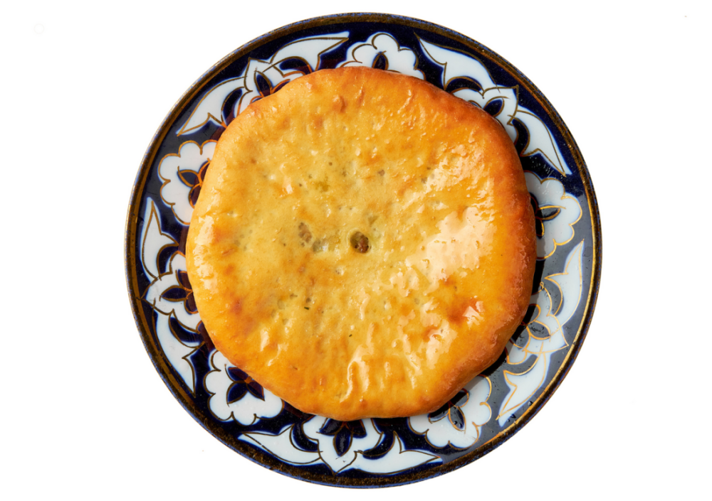 Тонкая восточная лепешка приготовленная из слоеного теста с добавлением зеленого лука.