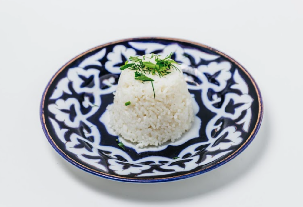 Рис, приготовленный на пару. Посыпается ароматной зеленью.