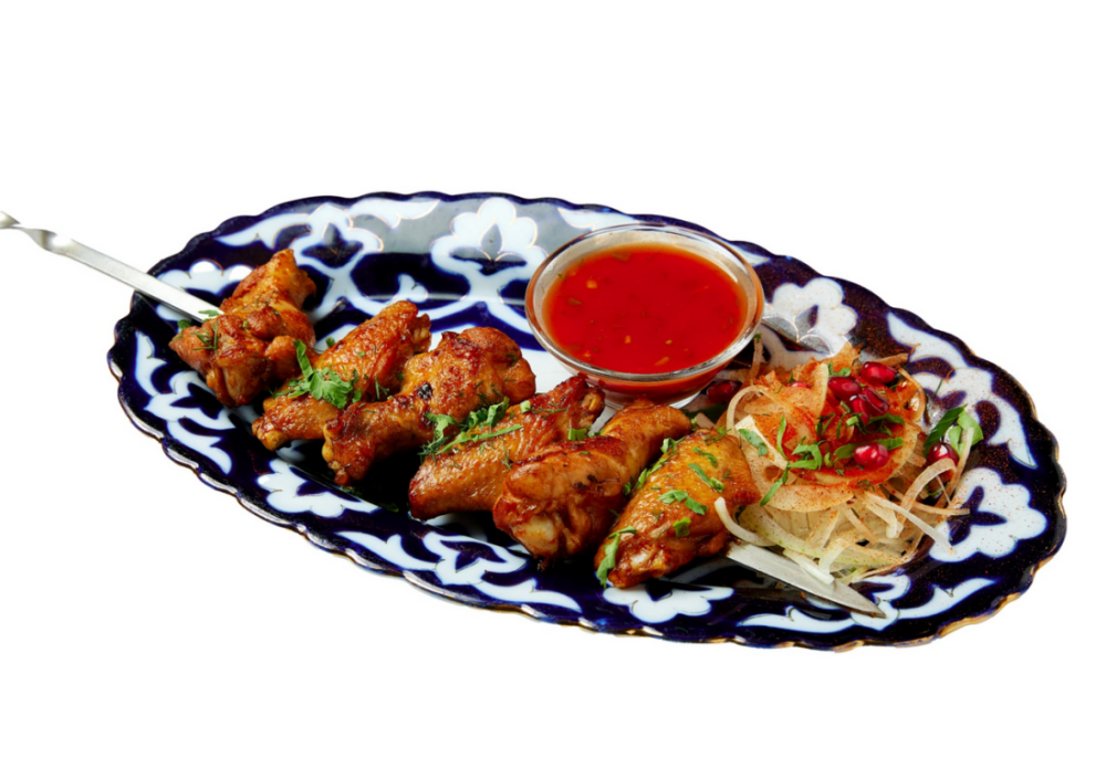 Отборные крылышки, приготовленные на мангале до румяной корочки. Подаются с маринованным луком и шашлычным соусом.
