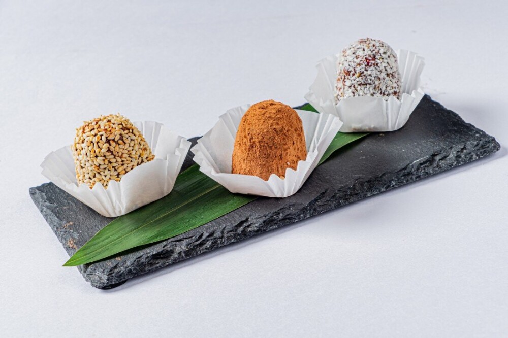 Конфеты ручной работы из орехов, какао и меда. Фисташек в кокосовой стружке, грецких орехов в кунжуте, из семян подсолнечника в какао. Без добавления сахара.