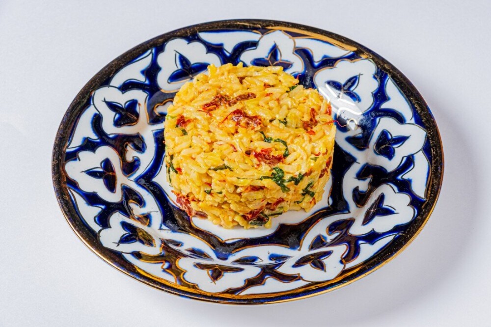 Восточное ризотто с пикантными нотками базилика и вяленых томатов