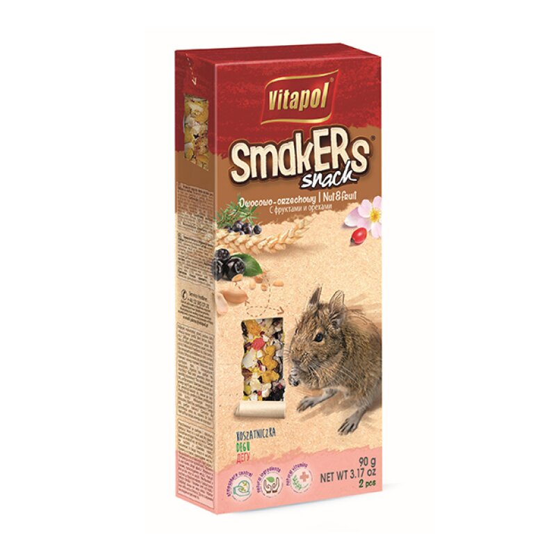 Лакомтсво для дегу Vitapol Smakers зерновые палочки с фруктами, 2*90 г