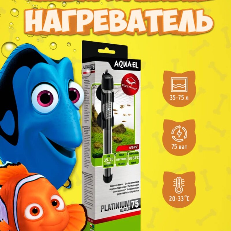 Нагреватель аквариумный Aquael стеклянный Platinium Heater 75W