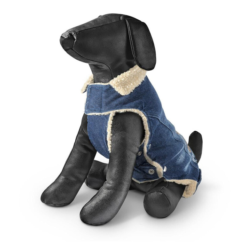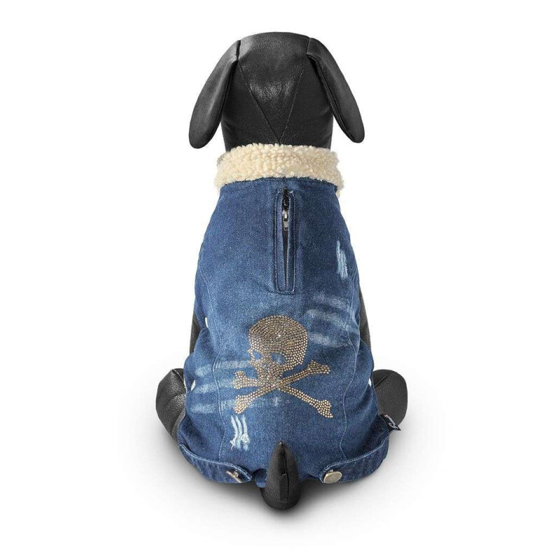 Комбинезон для собак джинсовый утепленный со стразами, M-L, 36см